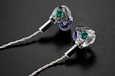 Equipped with one BA (balanced armature), it expresses a clear sound image with good resonance and thickness, which is an acoustic room within the shell exclusively designed for this model to enhance sonic dimensions. With the shell solidified by clear resin, CF-IEM avec CRESCENT VERT is thoroughly free from any undesirable vibrations and suitable both for private listening and for professional use.
